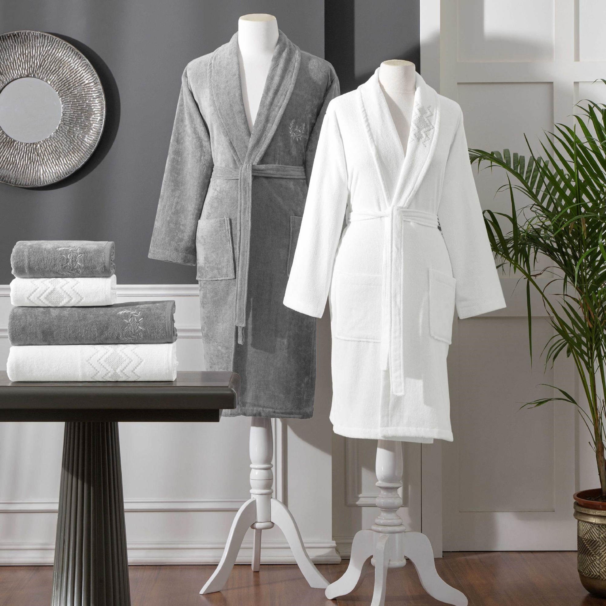 Taç Elora Pamuk Aile Bornoz Seti Beyaz Antrasit