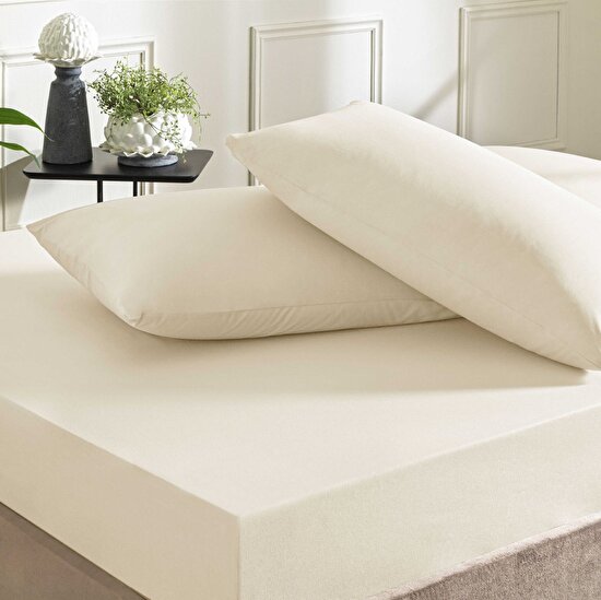Taç Ranforce Lastikli Çift Kişilik Çarşaf Set Ekru