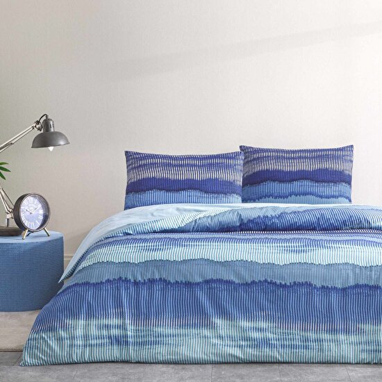 Taç Wave Ranforce Çift Kişilik Nevresim Takımı Mavi