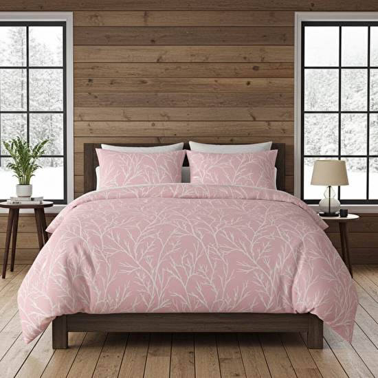 Taç Odette Yatak Örtülü Çift Kişilik Nevresim Seti Pudra