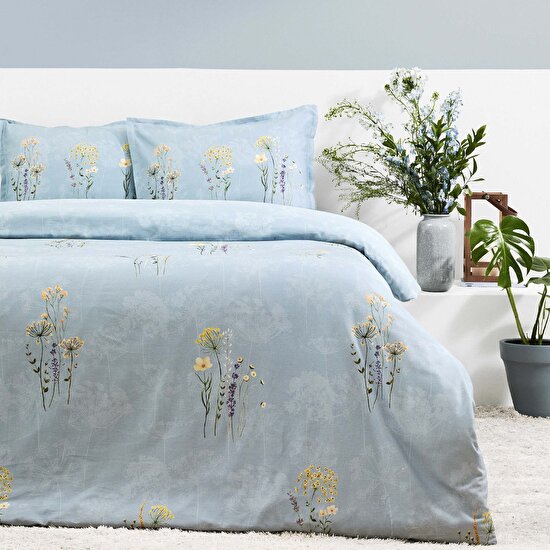 Taç Reborn Lillian Organik Saten Çift Kişilik Nevresim Takımı Mavi