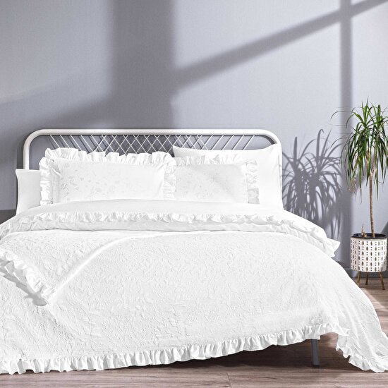 Taç Octavia Yatak Örtülü Çift Kişilik Nevresim Seti Beyaz