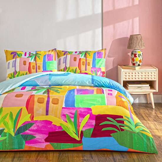Taç Lyona Ranforce Tek Kişilik Nevresim Takımı Mavi
