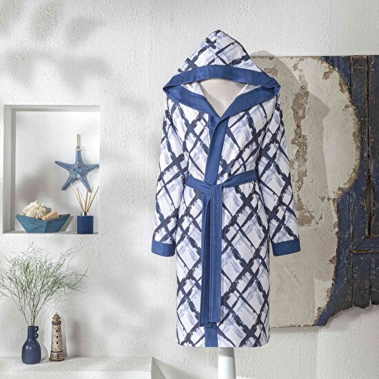 Taç Briza Pamuk Poliester Genç Bornoz Mavi L/XL
