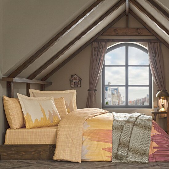 Taç Butik Alba Pamuk Percale Nevresim Seti Çift Kişilik Turuncu