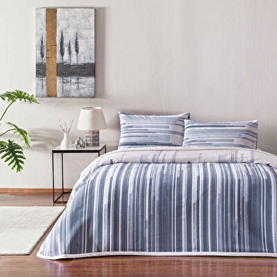 Taç Baskılı Grid Tek Kişilik Pike Takımı Mavi