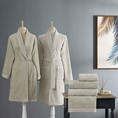 Taç Gabrıella Pure Cotton Pamuk Aile Bornoz Seti Taş Ekru