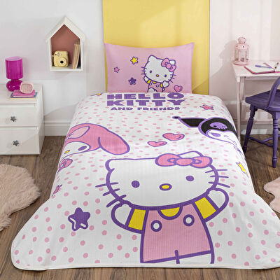 Taç Lisanslı Hello Kitty&Friends Tek Kişilik Pamuk Pike Takımı