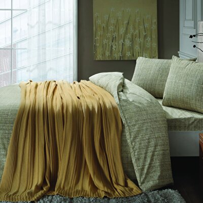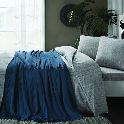 Taç Tek Kişilik Triko Battaniyeli Nevresim Seti Gri
